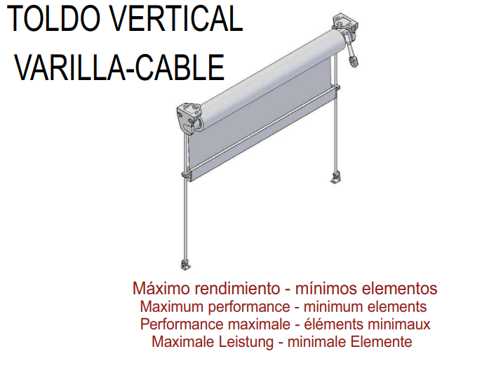 Este sistema de toldo vertical tiene 2 opciones de guiado: por varilla o por cable. Ambas opciones cumplen con la normativa europea EN-13561:2015 + A1 clase 1 de resistencia al viento, diferenciándose entre ellas por